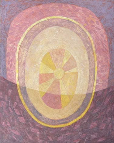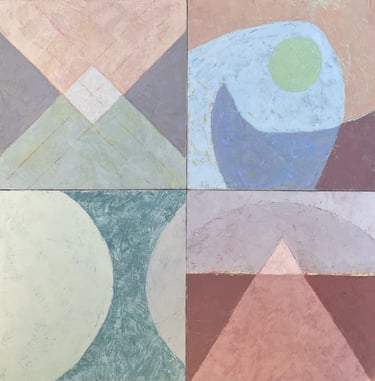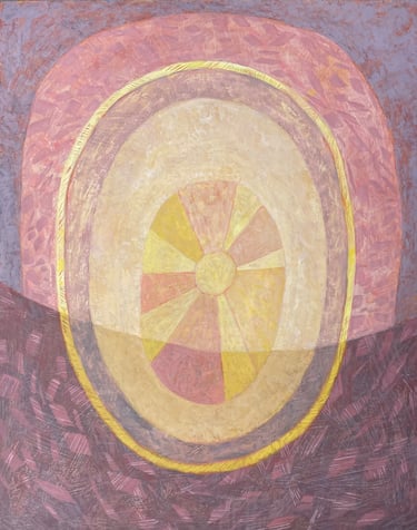 I work in casein paint, a milk-based paint dating to ancient Egyptian times. Casein has a plaster-like sheen when painted on panel.